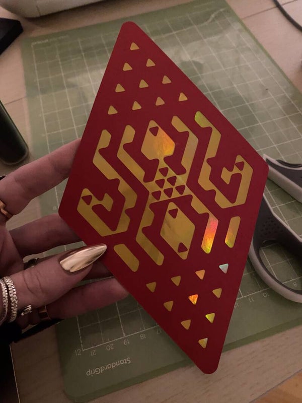 Ships Quickly. Handmade, original art. Features the 2 symbols from The 16 KEYS SUPPORT TOOL : KEY 3 ◊ MIND OF FREEDOM AND KEY 4 ◊ MIND OF WISDOM combined into a unified symbol as a recommended pair. Find the video teachings at the link above associated with each KEY by searching by title. In low lighting it appears as shiny gold. As lighting increases, rainbows intensify.